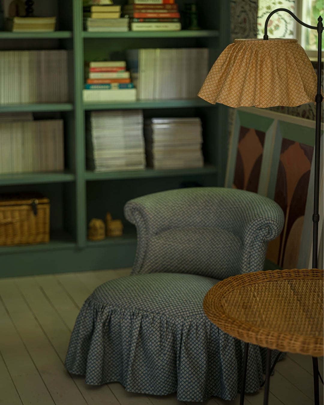 Lined in white organic cotton, the shade has a lovely weight and allows light to filter softly through the layers, creating a gentle, inviting glow.