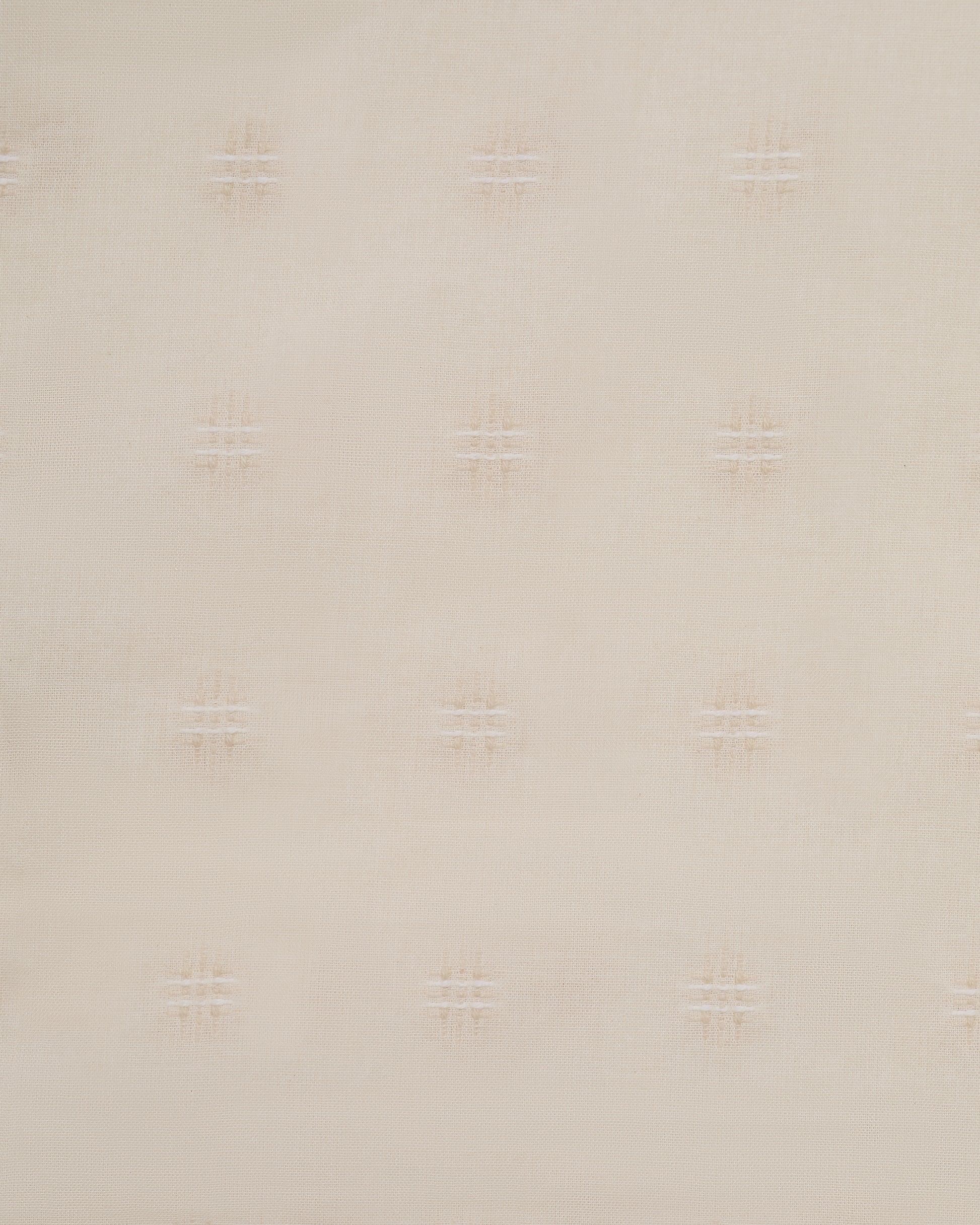 A soft creamy yellow coloured cross-stitch embroidery. Against a backdrop of our lightweight cotton.