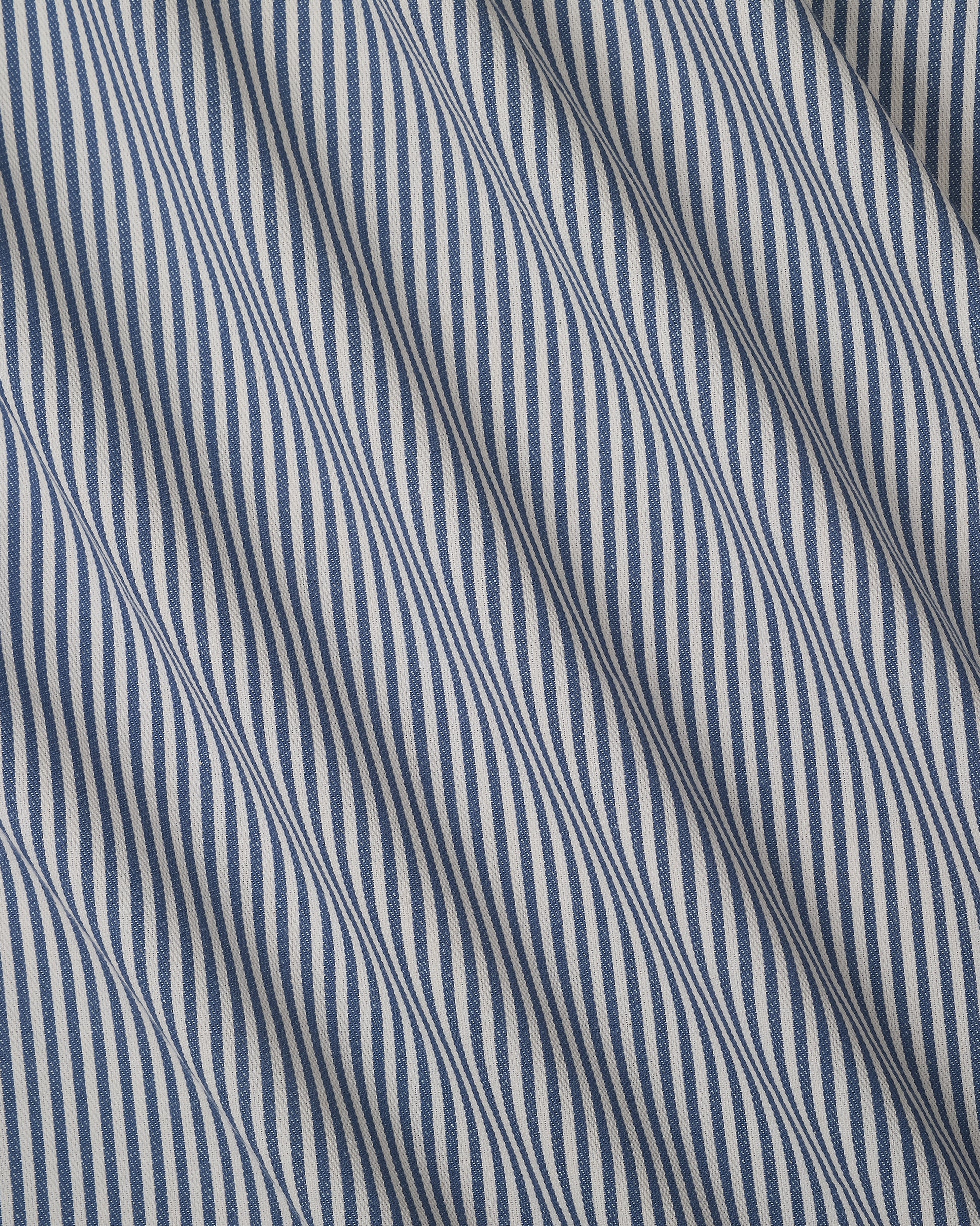 A fine woven stripe in a bold blue taken from the tones of delphinium. A cotton and linen blend.