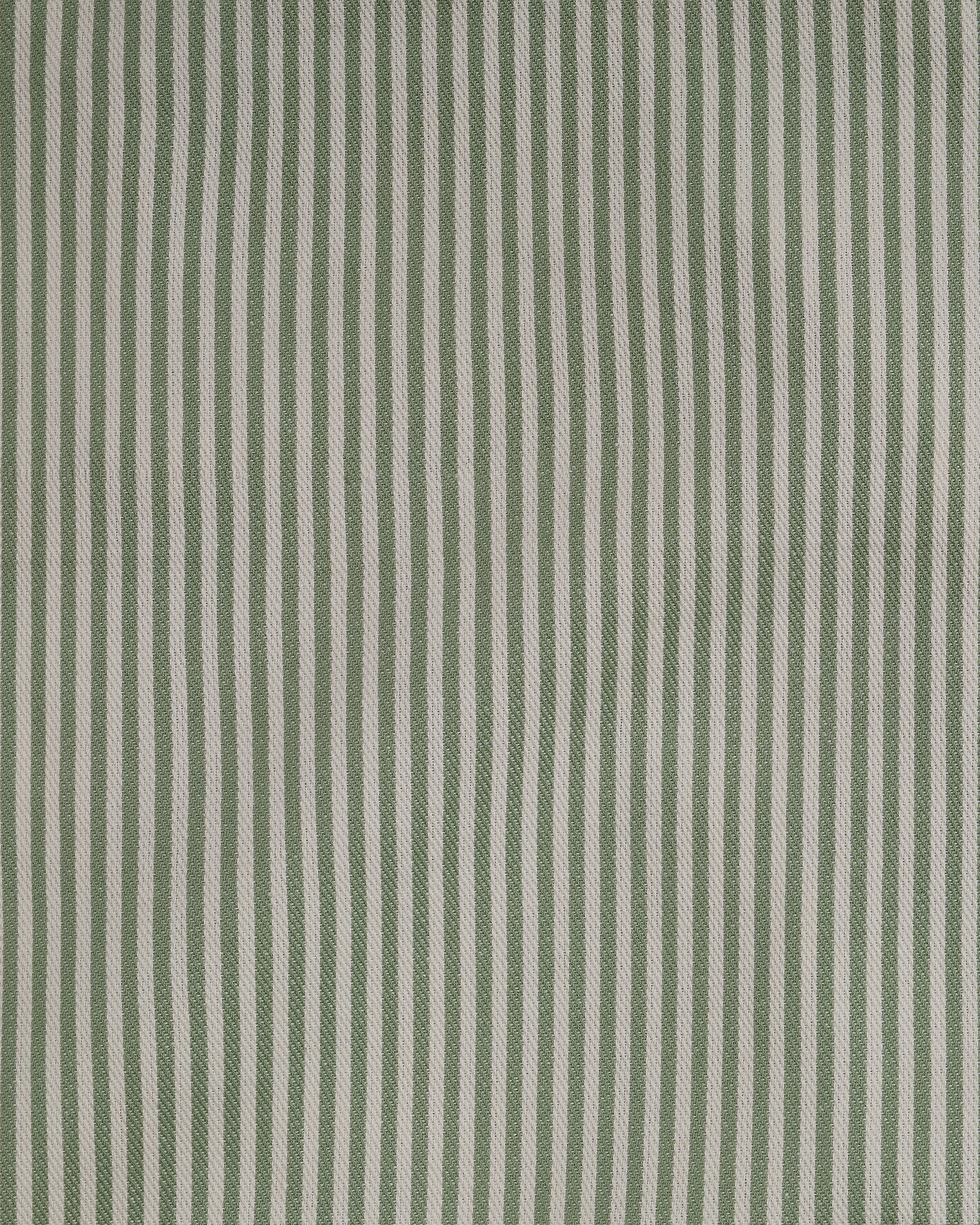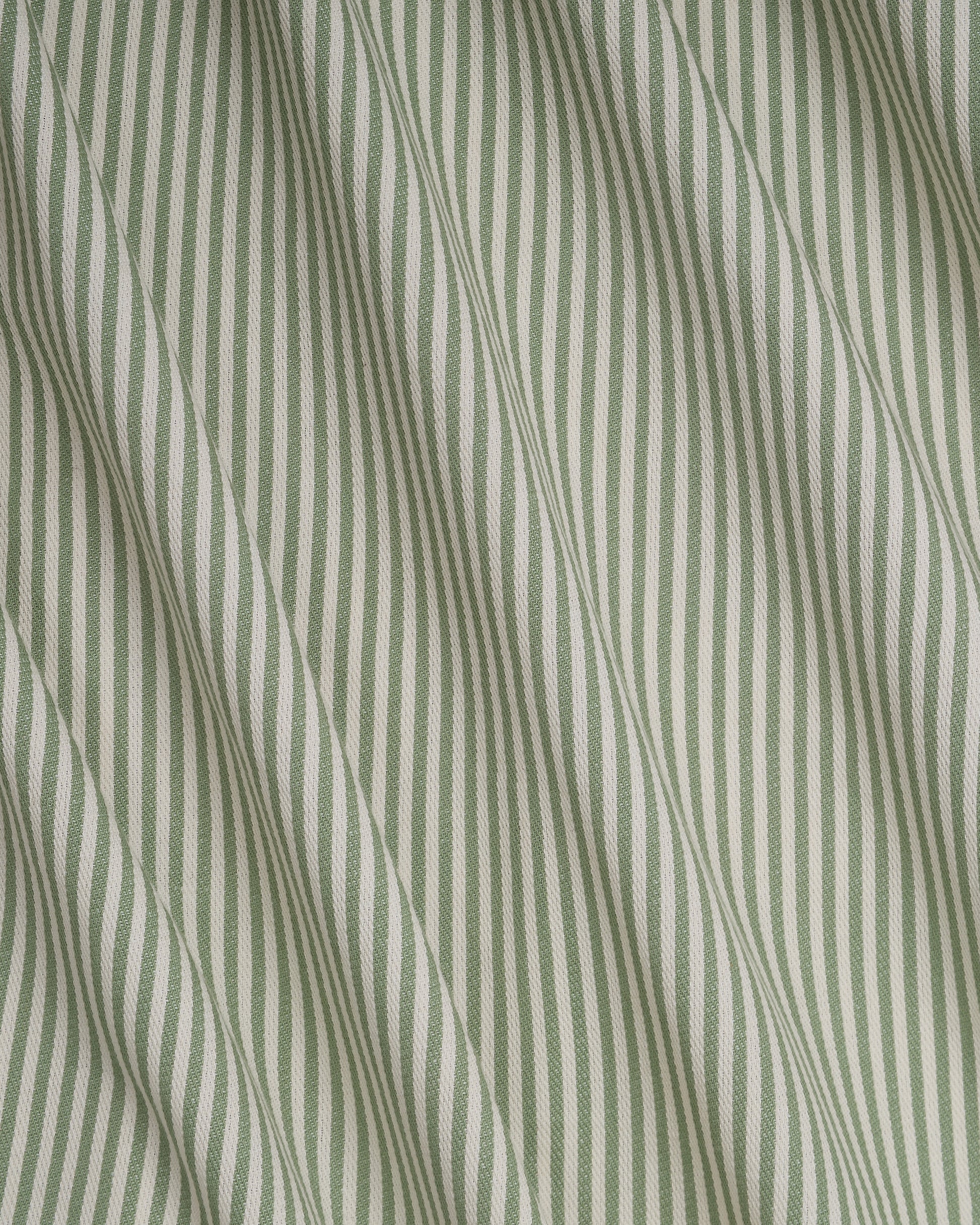 A fine woven stripe in soft green sage. A cotton and linen blend.